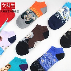 모 나리 자 커 플 보트 양말 추상 고 반 고 성운 명화 양말 남녀 짧 은 통 양말 세트 파도 5 색 5 켤레 프 리 사이즈