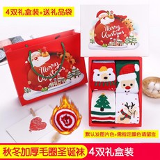 키 즈 크리스마스 양말 가을 겨울 두 꺼 운 모직 양말 남녀 아기 크리스마스 선물 세트 아기 면 양말 4 켤레 세트 1 플러스 선물 주머니 M 사이즈 [제안 0 - 6 세]