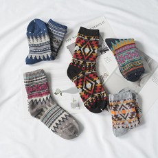 5. 투 웨 이 스타일 모직 양말 굵 은 선 속 양말 남녀 커 플 양말 면 양말 복고 단화 양말 세트 B 5 켤레 / 포켓 프 리 사이즈